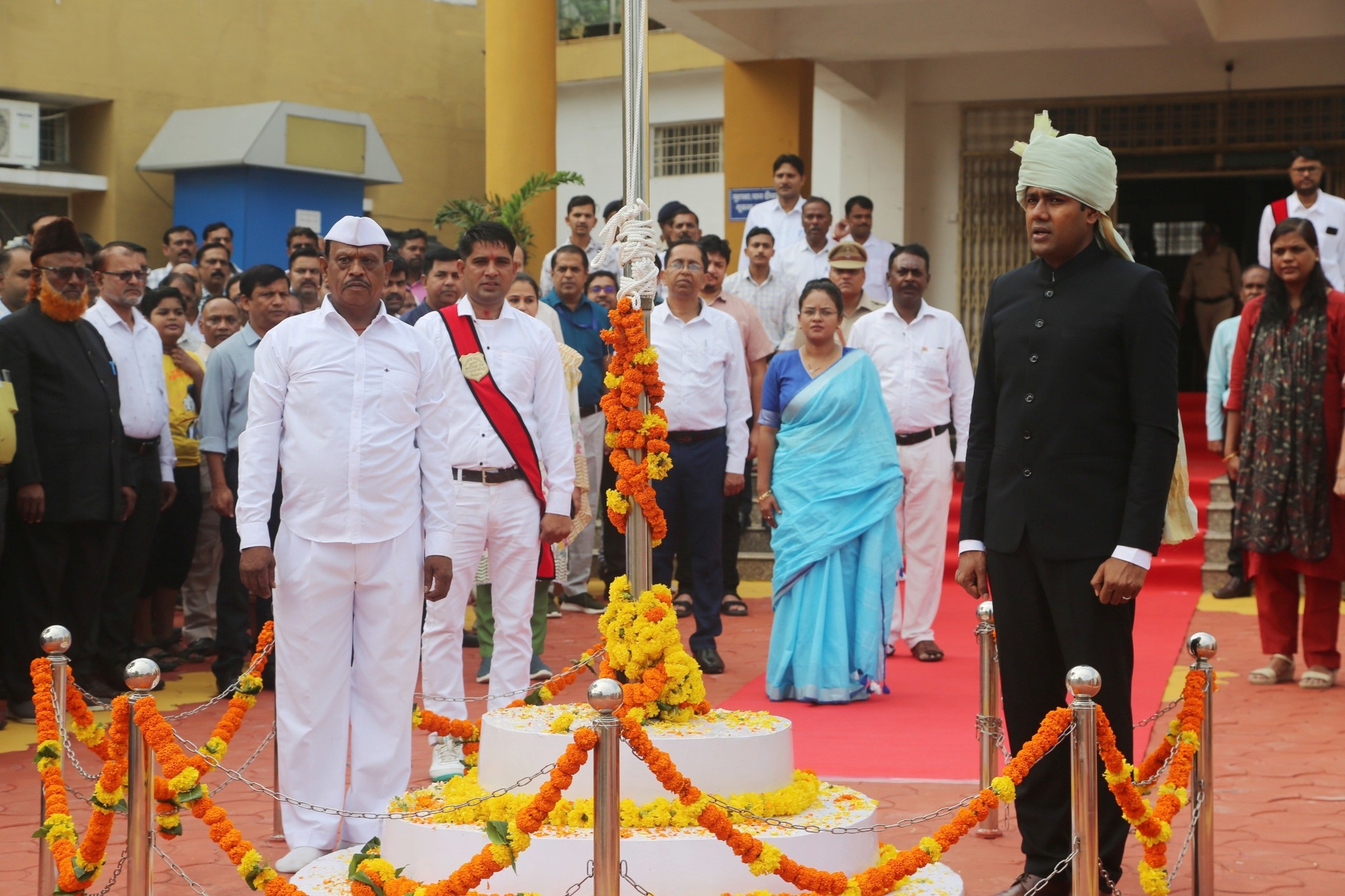 कलेक्टर श्री संदीप जी आर ने ध्वजारोहण किया, परेड की सलामी ली