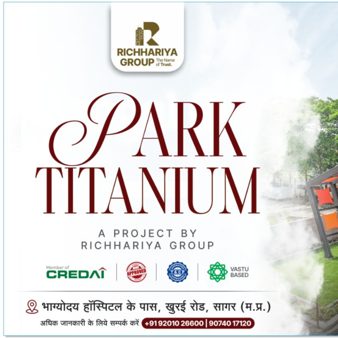 रिछारिया समूह को खुरई रोड पर भाग्योदय अस्पताल के पास स्थित एक प्रीमियम आवासीय कॉलोनी, पार्क टाइटेनियम की शुरुआत करते हुए गर्व हो रहा है। यह विशिष्ट विकास परियोजना सभी आधुनिक सुविधाएँ प्रदान करती है जो समझदार घर के मालिक चाहते हैं।